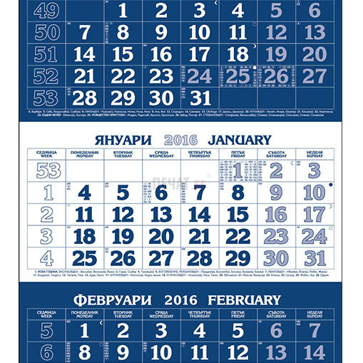 Допълнителна информация: фази на луната, именни дати, църковни празници, международни празници, картонена подложка.