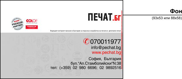 Откроете се от тълпата с персонализирани визитки. Качете свое лого, снимка, графика или използвайте предварително съществуващ шаблон. Визитните картички от Печат.БГ са професионално отпечатани с висока детайлност на отпечатъка. Персонализирайте всяка страна на вашата визитна картичка и изберете от стотици стилове на дизайна безплатно. Пъстри и точни цветове посредством последно поколение дигитална технология. Гарантираме, че нашите висококачествени визитки абсолютно ще ви зарадват, всеки път!